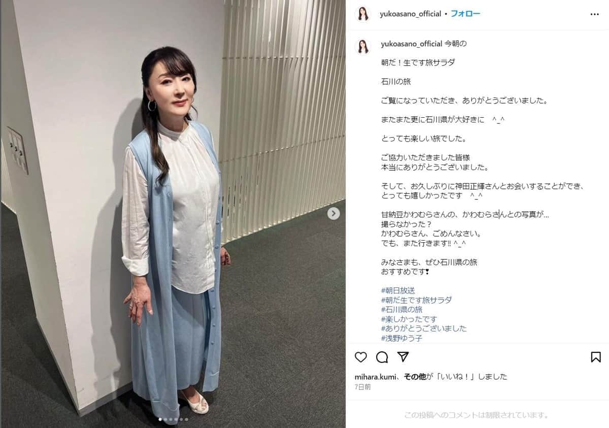 浅野ゆう子さんのインスタグラム(@yukoasano_official)より