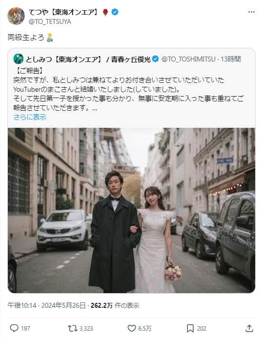 東海オンエアとしみつ、グループが「大爆発してる時」に結婚していた 妻はすでに安定期、突然の報告に「鳥肌エグすぎ」「東海すぎる」