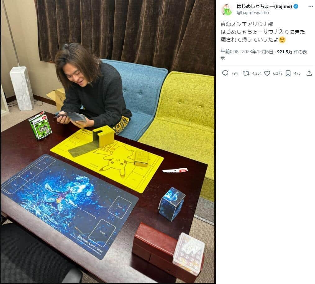 しばゆーさんの黒髪姿、はじめしゃちょーさんのX(@hajimesyacho)より