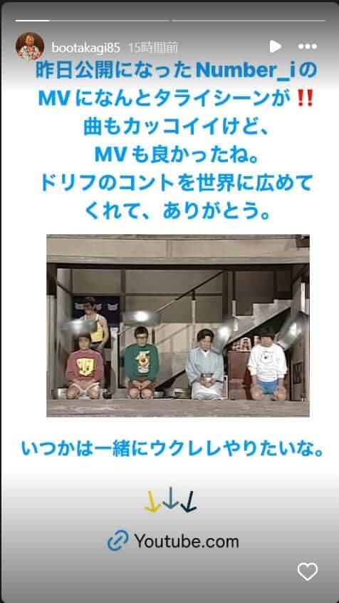 高木ブーさんのインスタグラム(@ bootakagi85)より