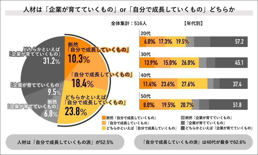「人材は自分で育っていくもの」と考える社会人が過半数 大手人事は指摘「会社が『あなたを成長させる』にシフトしている」