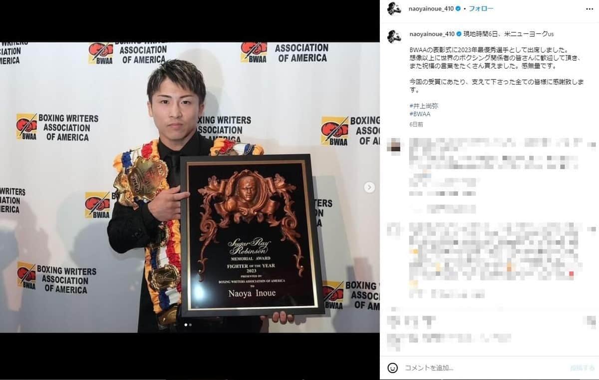 米国で表彰された井上(井上のインスタグラムより)