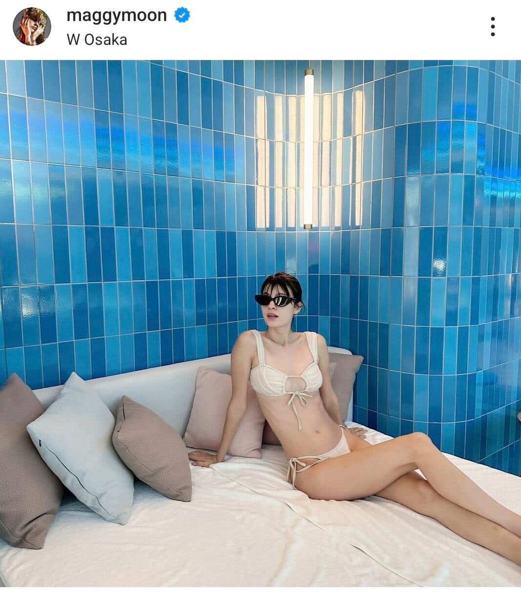 マギー「大胆ビキニ」で魅了 初の「W大阪」、ベッドでくつろぐ姿に「女神かよ」