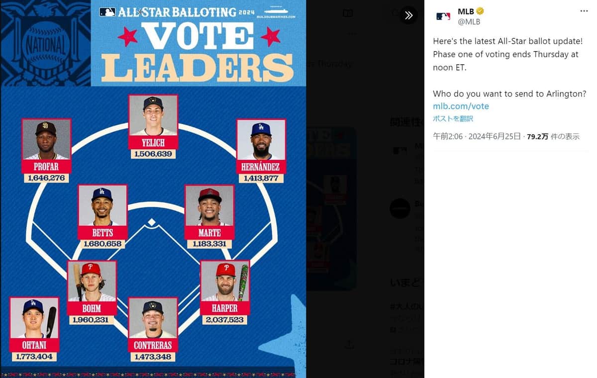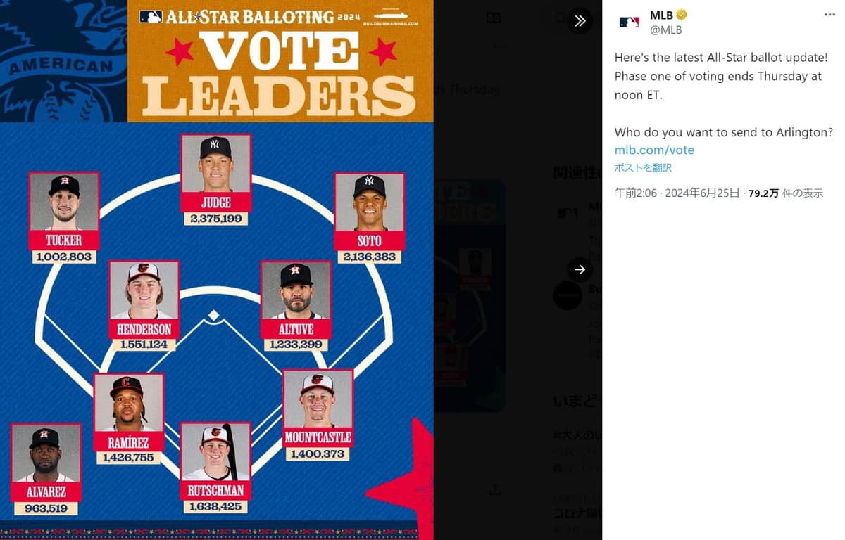 大谷翔平、オールスターDH部門1位キープ 「圧倒的ですね!!楽しみです」 MLBがファン投票の中間発表を更新