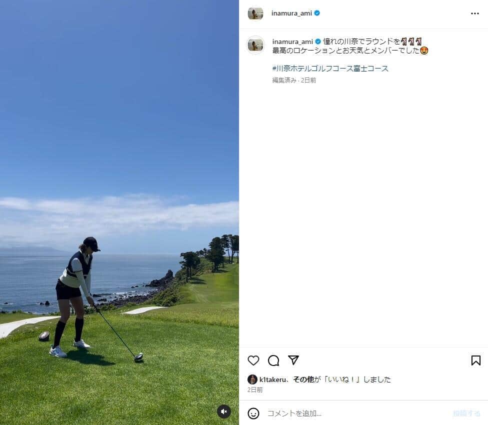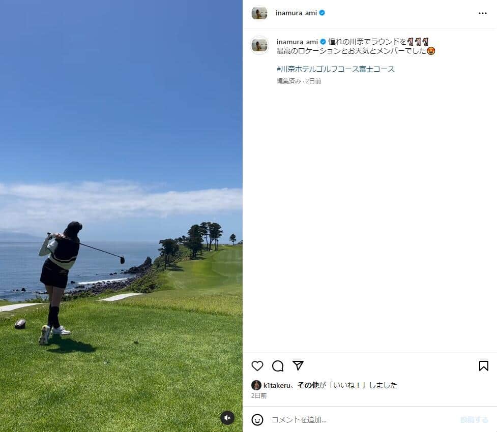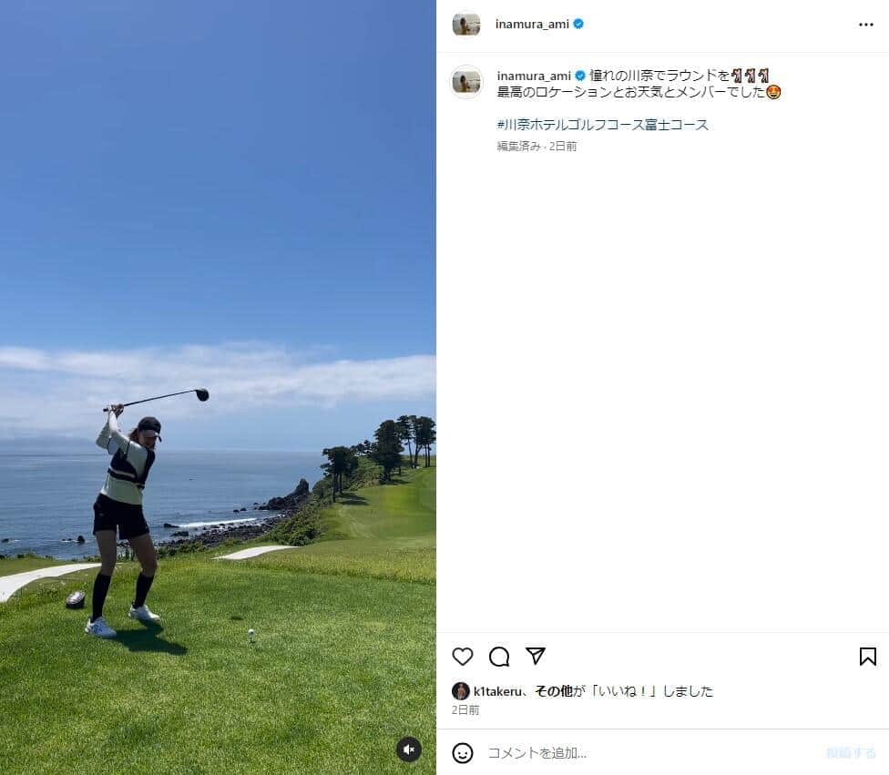 「憧れの川奈で」稲村亜美、太ももあらわにゴルフでも「神スイング」 「可愛くてナイスショット」