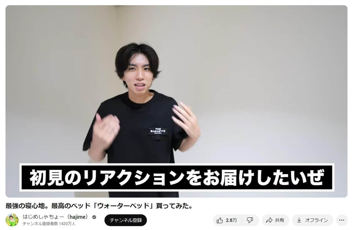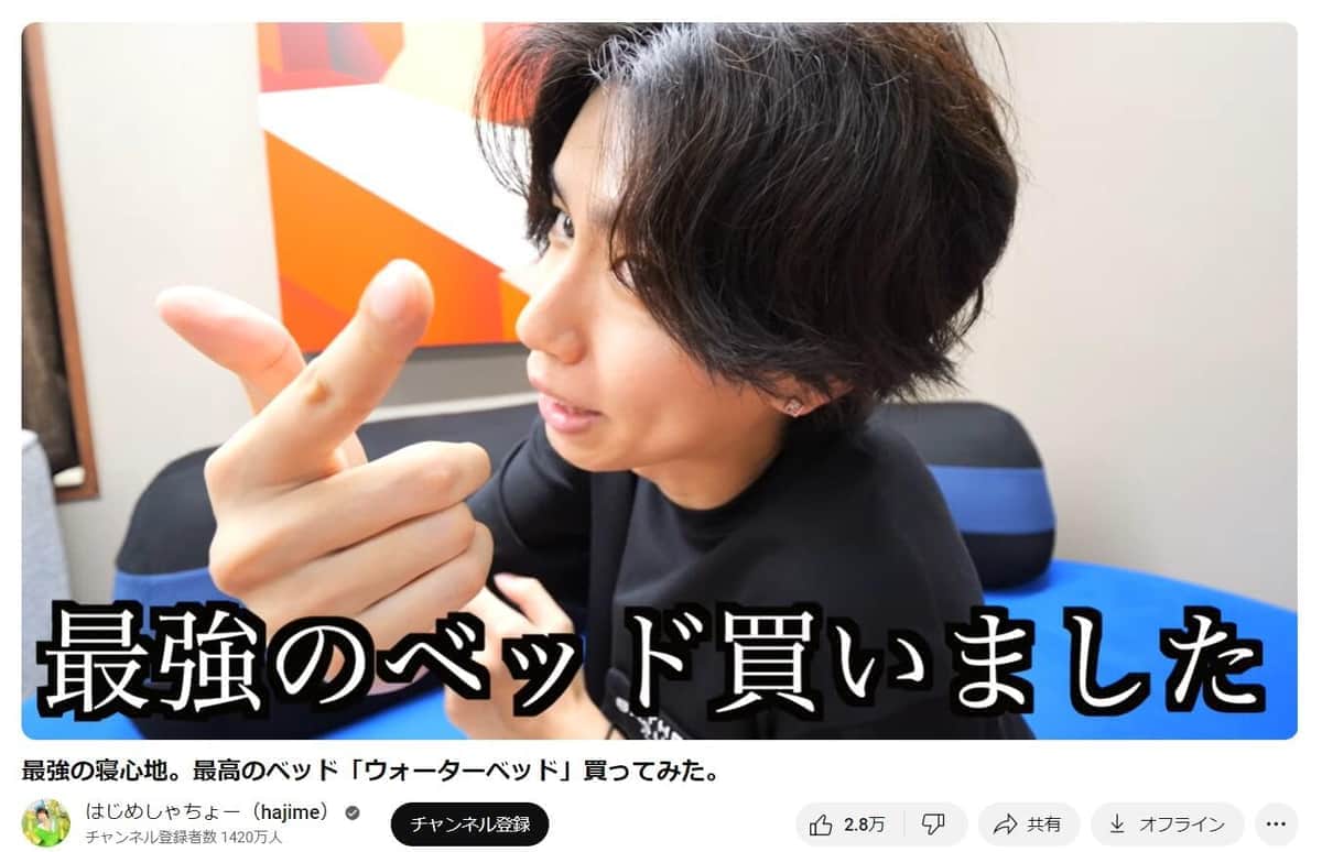 「最高の買い物」はじめしゃちょー、147万円の高級ウォーターベッド購入 「僕が調べた中では日本一高かった」