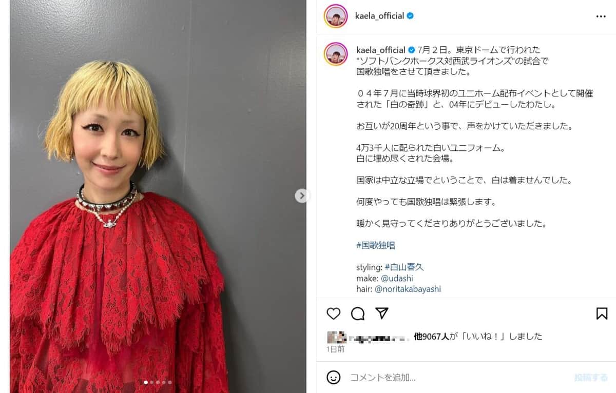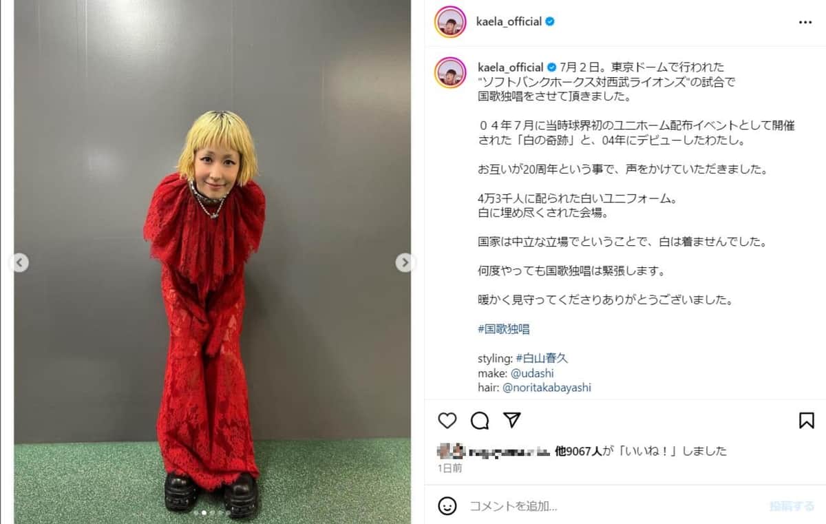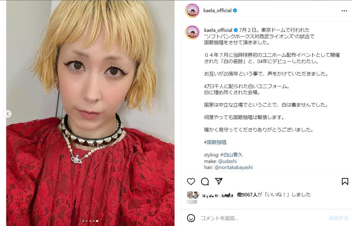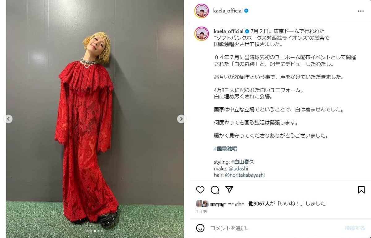 木村カエラ、金髪&真っ赤なレースワンピで国歌独唱 「デビューからずっとカッコイイ」