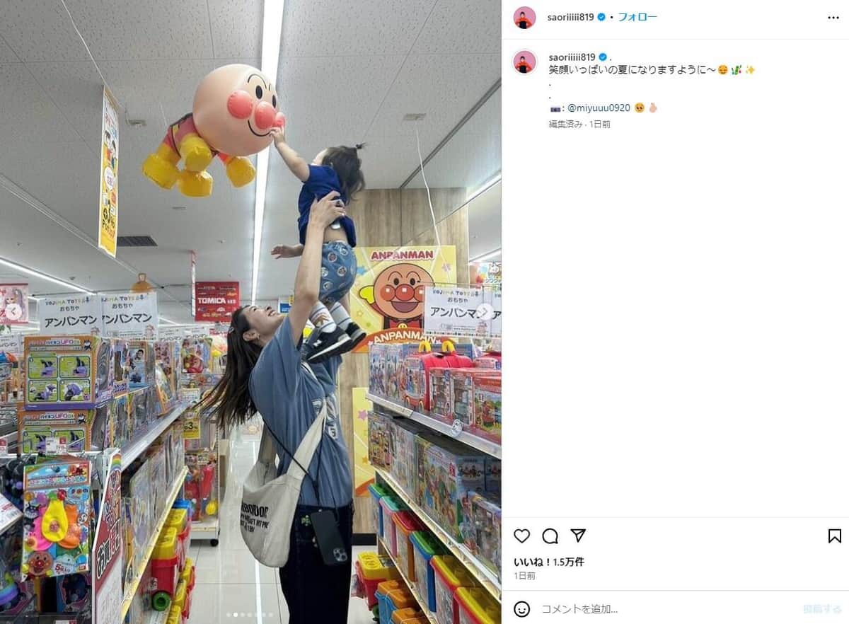 元女子バレー木村沙織の「高い高いが高すぎ!」 息子が天井のアンパンマンにタッチ