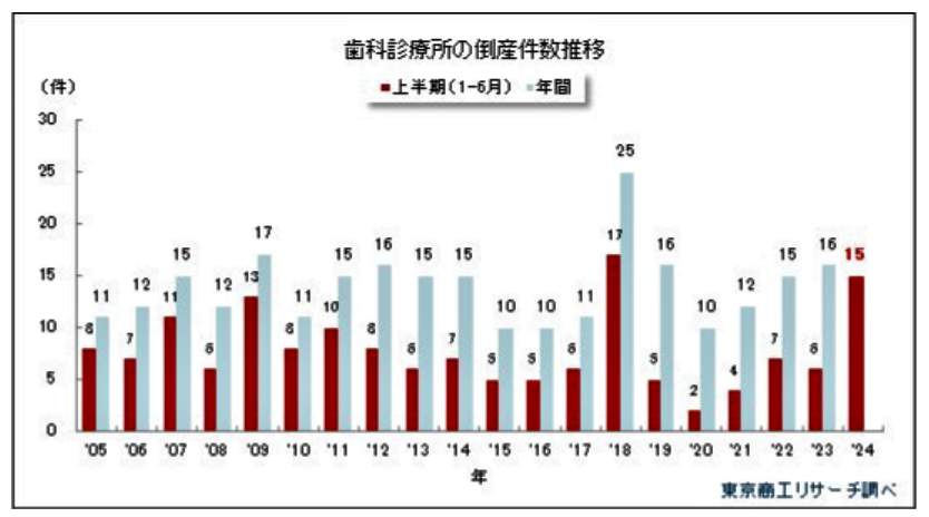 (図表)歯科診療所の倒産件数の推移(東京商工リサーチ調べ)