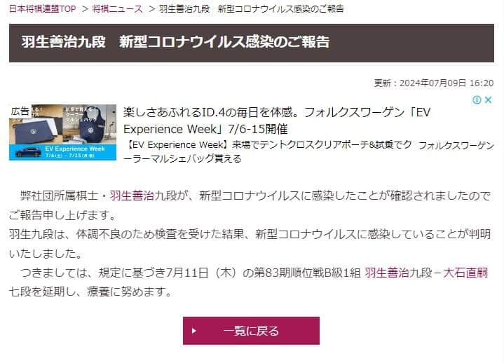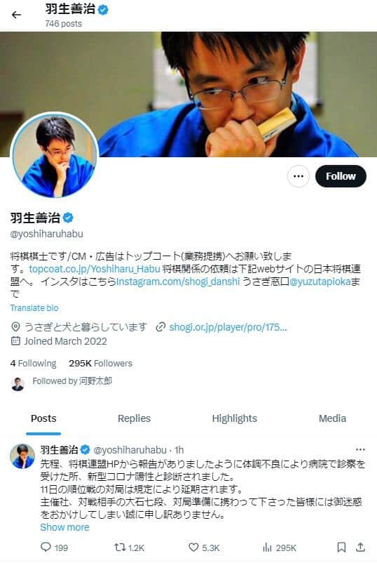 羽生善治九段、新型コロナに感染 大石直嗣七段との対局は延期に 「今はお体をご自愛ください」エール届く