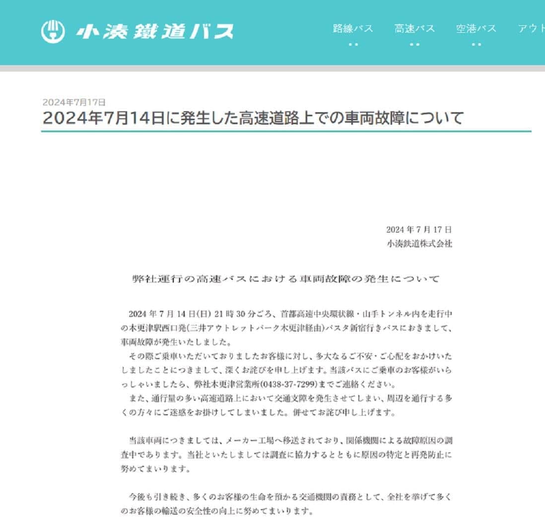 高速バスでエンジンから出火、運転手の対応に不満の声 小湊鉄道「完璧な誘導は難しいが、問題ないとは言えない」