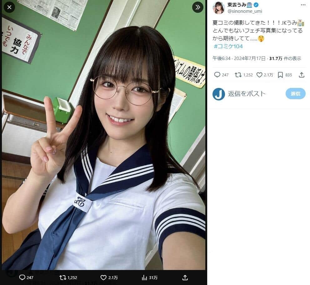 東雲うみさんのX(@sinonome_umi)より