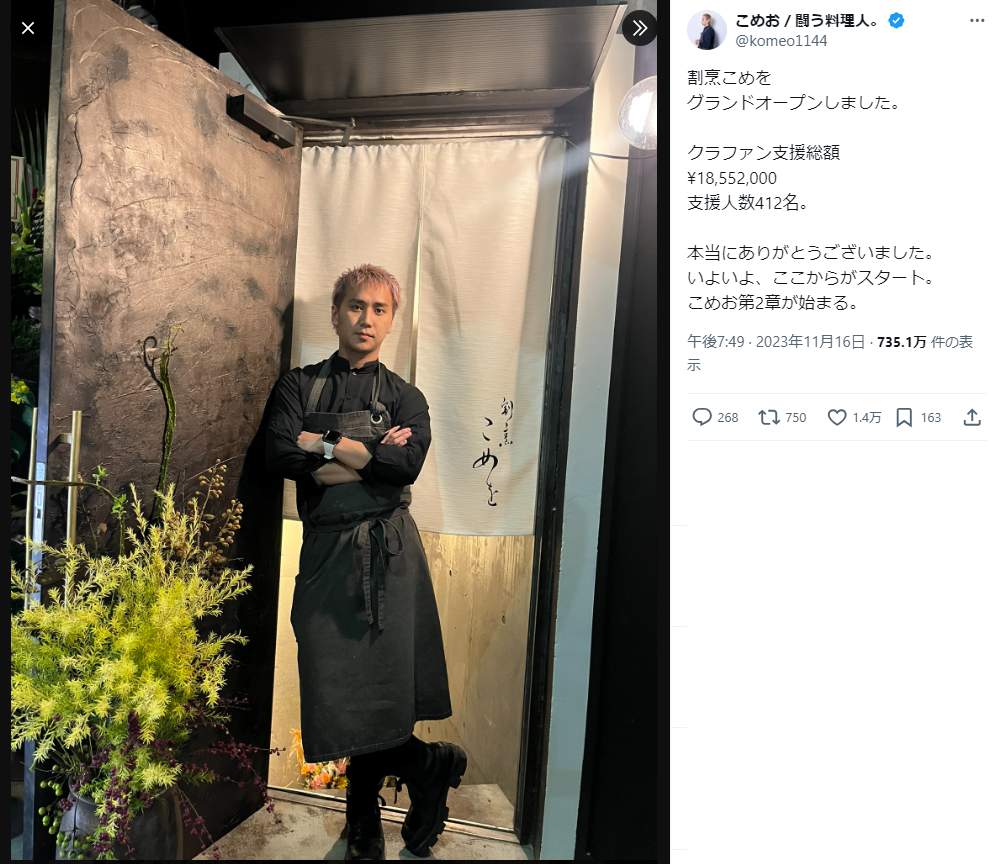 飲食店を無断キャンセル&着信拒否→「予約取ったつもりない」と弁明 闘う料理人・こめお激怒「俺は地獄まで追いかけるよ」