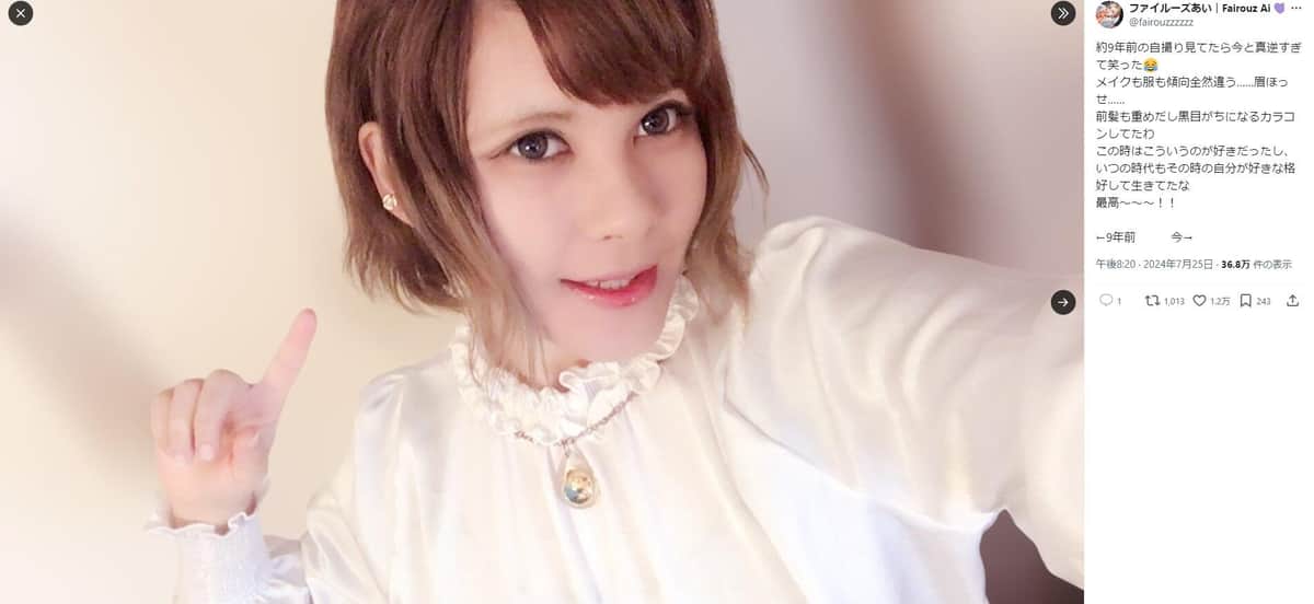 「ジョジョ」声優ファイルーズあい、9年前の自撮り「今と真逆」風貌 「何しても映える」「いつの時代も最高」