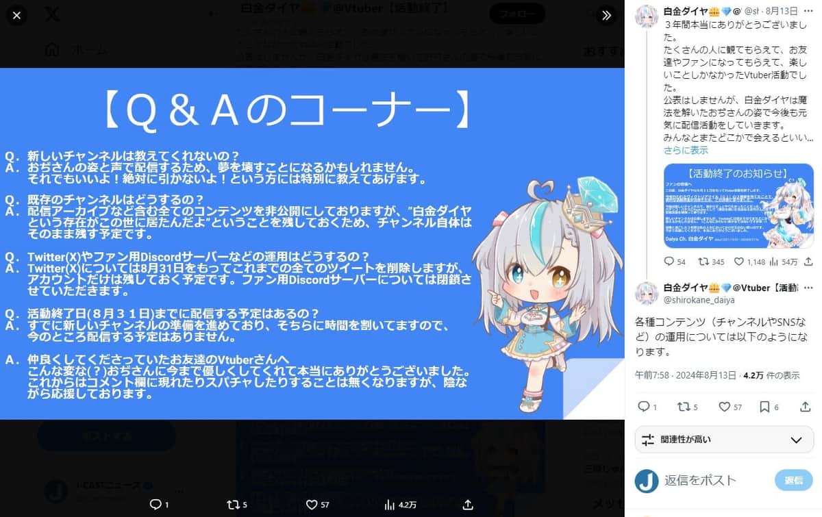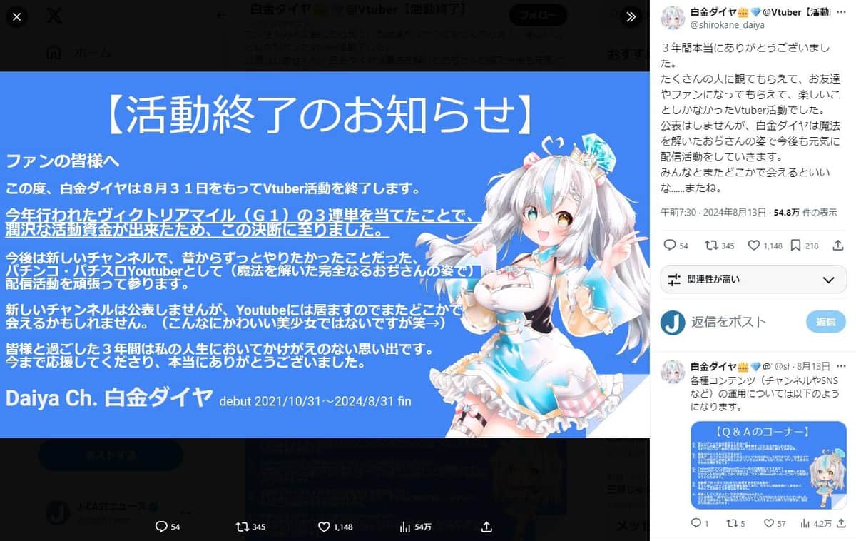 91万馬券的中→VTuber「活動終了」へ まさかの理由で脚光「V史上最強の引退の仕方では?」「かっけえよ~」