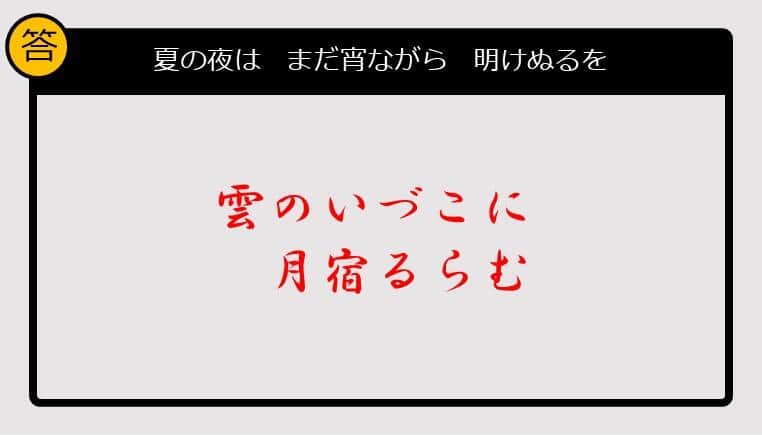 【この句の続きは?】夏の夜は まだ宵ながら 明けぬるを......