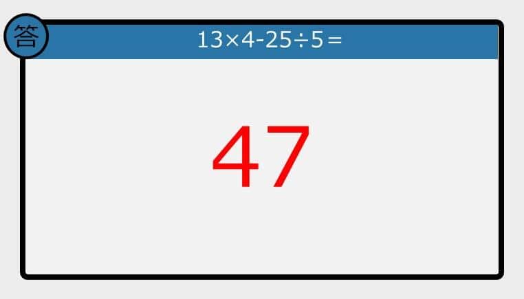 【楽しく脳トレできる計算クイズ】13×4-25÷5は?