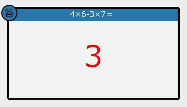 【楽しく脳トレできる計算クイズ】4×6-3×7=