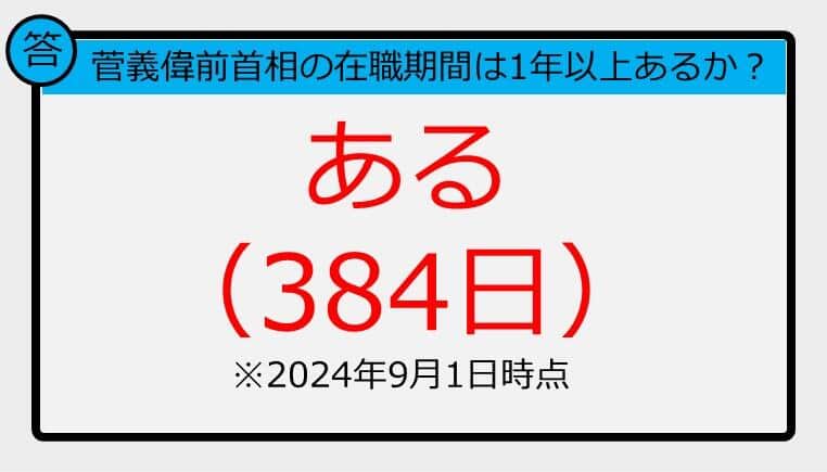 【総理大臣クイズ】菅義偉前首相の在職期間は1年以上あるか?