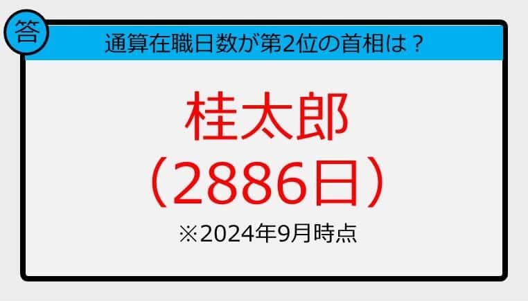 【総理大臣クイズ】通算在職日数が第2位の首相は?