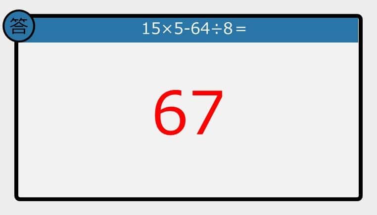 【楽しく脳トレできる計算クイズ】15×5-64÷8は?