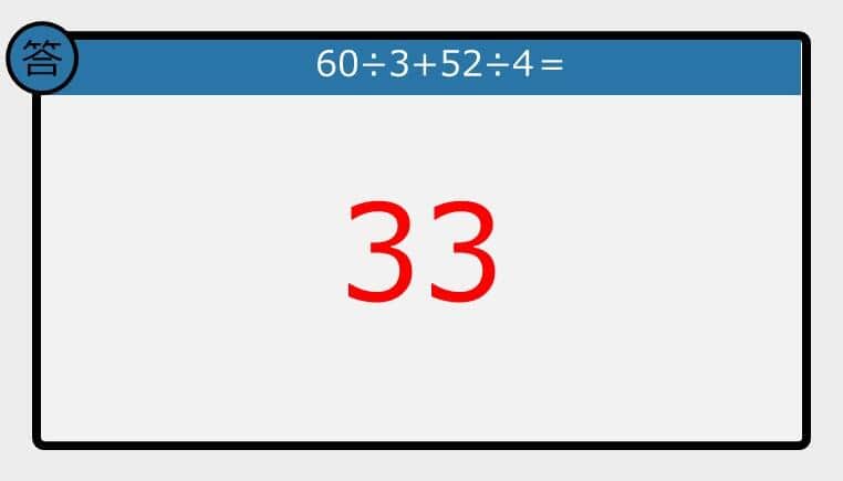 【楽しく脳トレできる計算クイズ】60÷3+52÷4は?