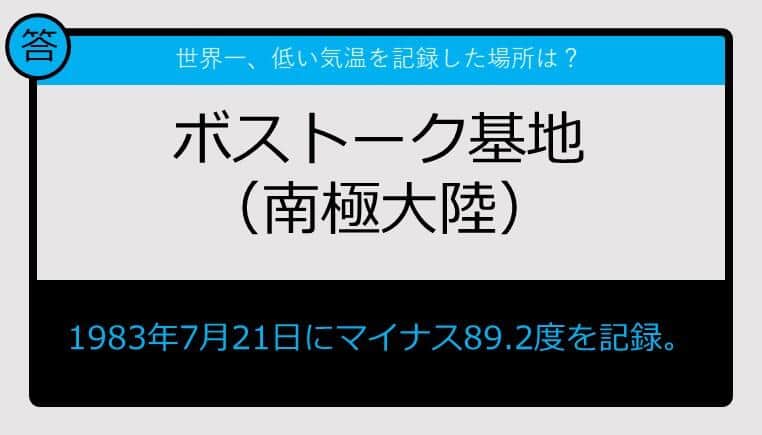 【クイズ】世界一、低い気温を 記録した場所は?