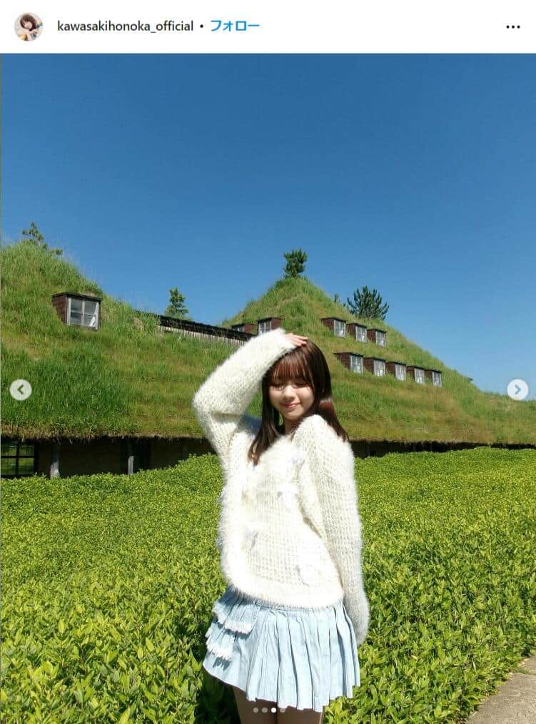 「仮面ライダー」敵役演じる川﨑帆々花、「ニット×ミニスカ」レア姿 ネット衝撃「めちゃくちゃ可愛い」