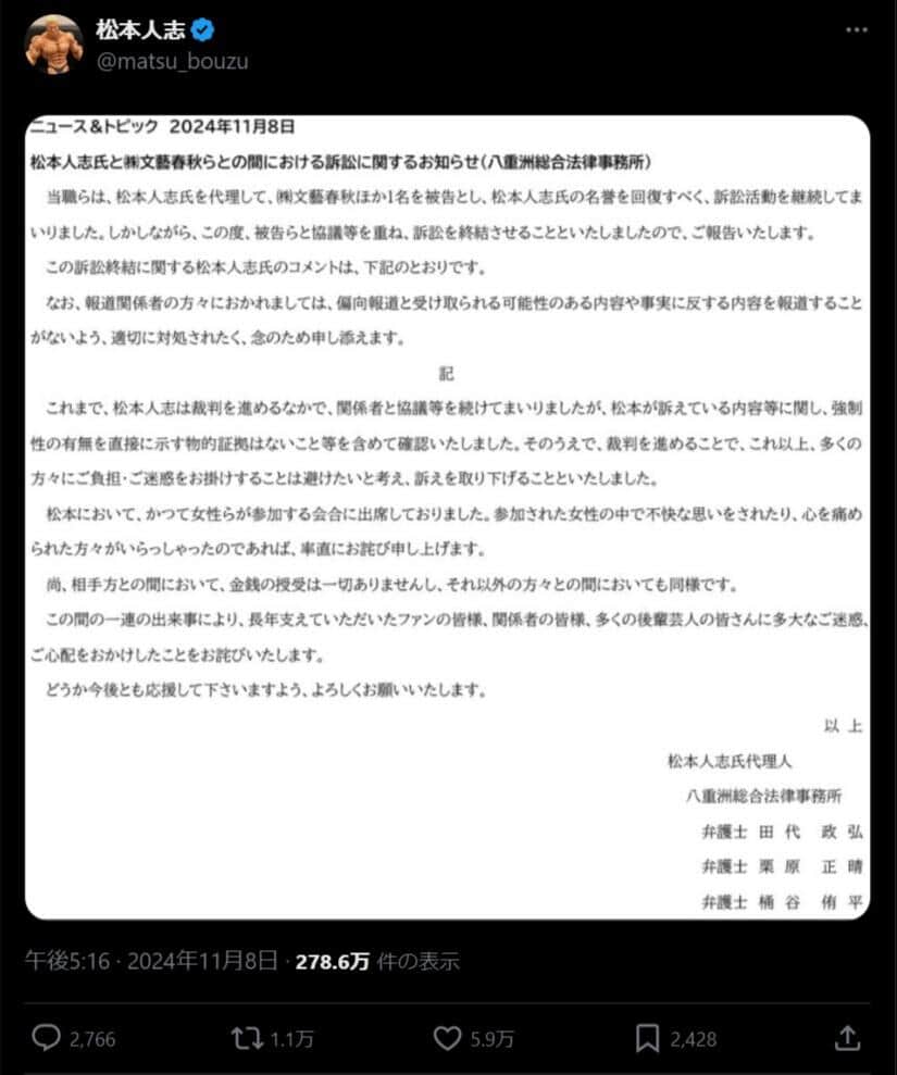松本人志vs文春、訴訟取り下げで決着 「強制性の有無」「物的証拠」...関連語句が続々トレンドに
