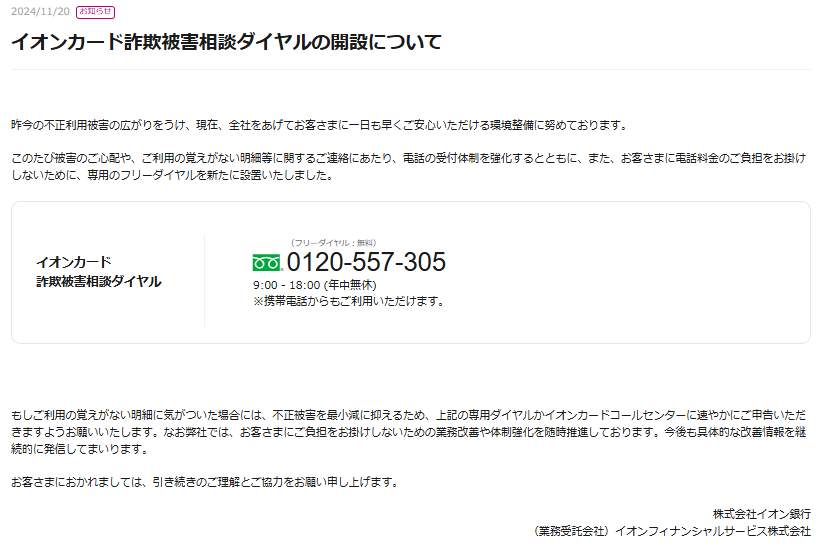 「イオンカード」運営会社、セキュリティ対応を説明「犯罪集団がオフライン取引を悪用」 相談ダイヤル開設へ