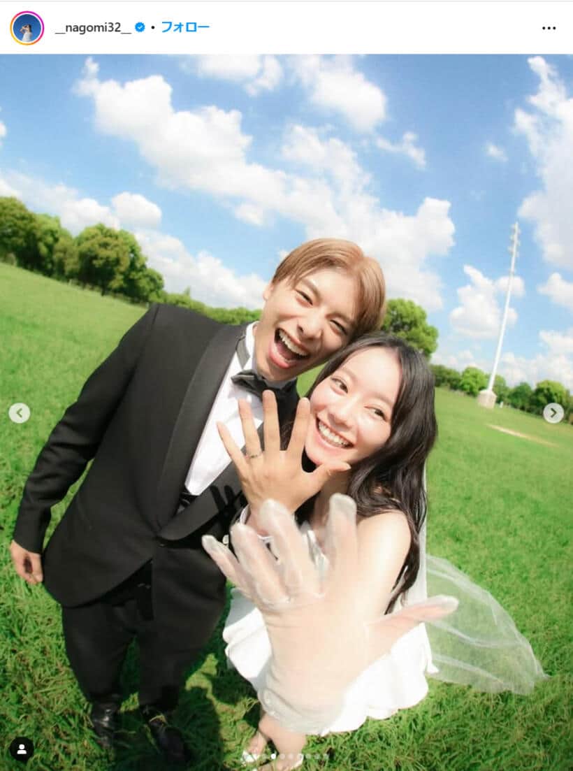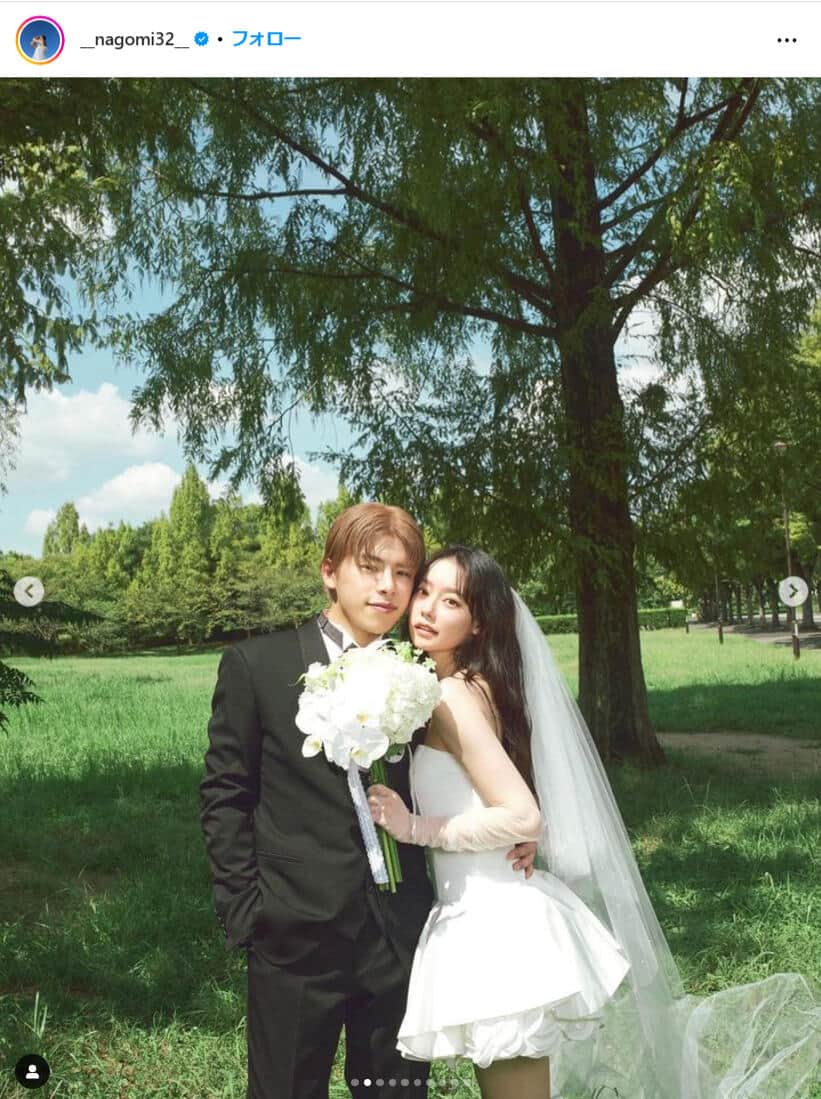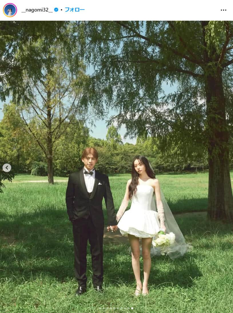 人気カップルYouTuber「なこなこ」、ミニ丈ウェディングドレス姿に「世界一可愛いよ!」 こーくんがなごみにキス