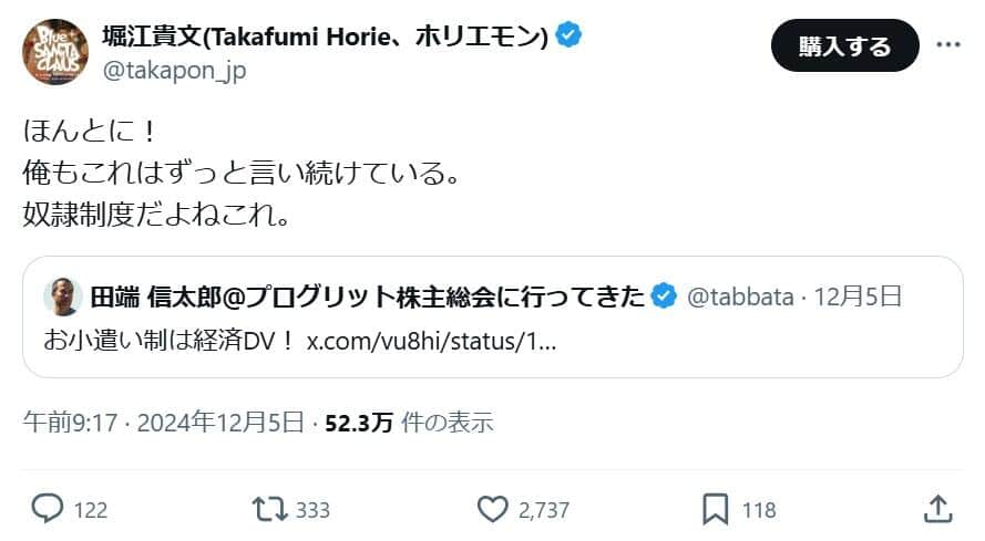 夫のお小遣い制は「経済的DV」「現代の奴隷制度」 ホリエモンが「少子化の原因」と激しく批判