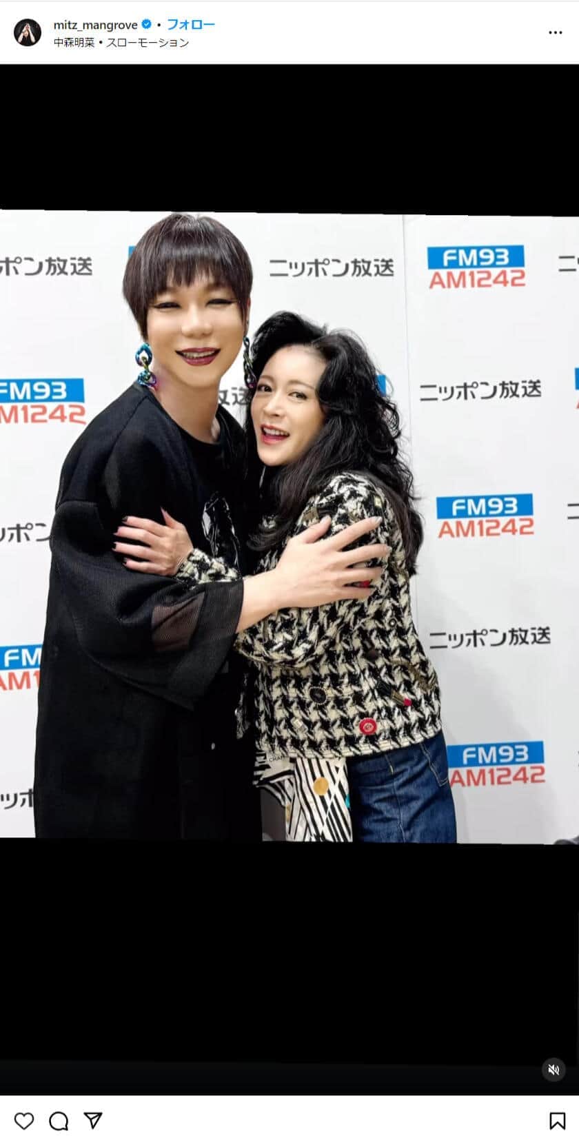 中森明菜の近影にネット騒然 ミッツ・マングローブとハグ「美しさありあまりすぎのツーショット」