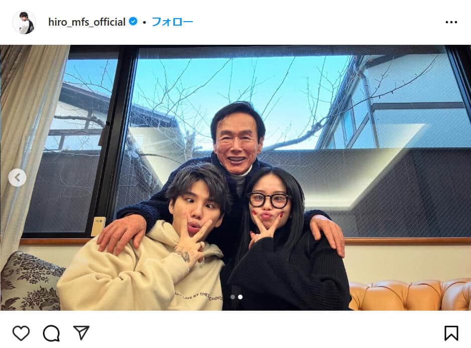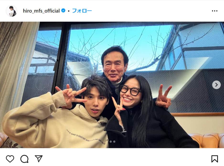 マイファスHiro、妻・山本舞香&父・森進一との豪華家族写真 ネット驚き「すごいスリーショット...」
