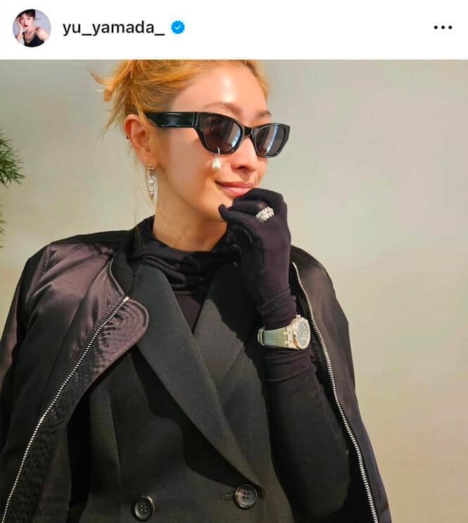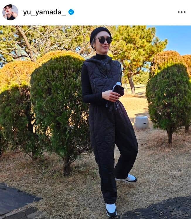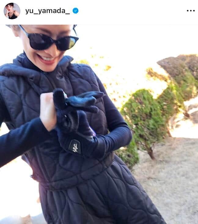 山田優、「爆イケ」サングラス×黒ダウンセットアップでゴルフ満喫「ぬくぬくでプレーできました!」