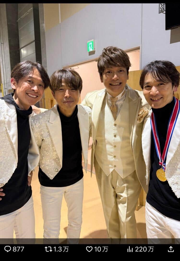 「はじめてかも」仮装大賞出場のトニセン、「ガキの頃からの付き合い」香取慎吾と4ショ大反響「激アツです!」