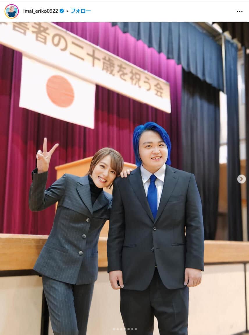 今井絵理子氏、プロレスラー息子の成人式で2ショ 「そっくり」「こんな大きな息子さんが居られるとは」