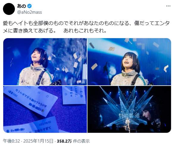 あのちゃん、アンチコメントをライブの演出に転用 「素晴らしい発想」「表情が良すぎる」