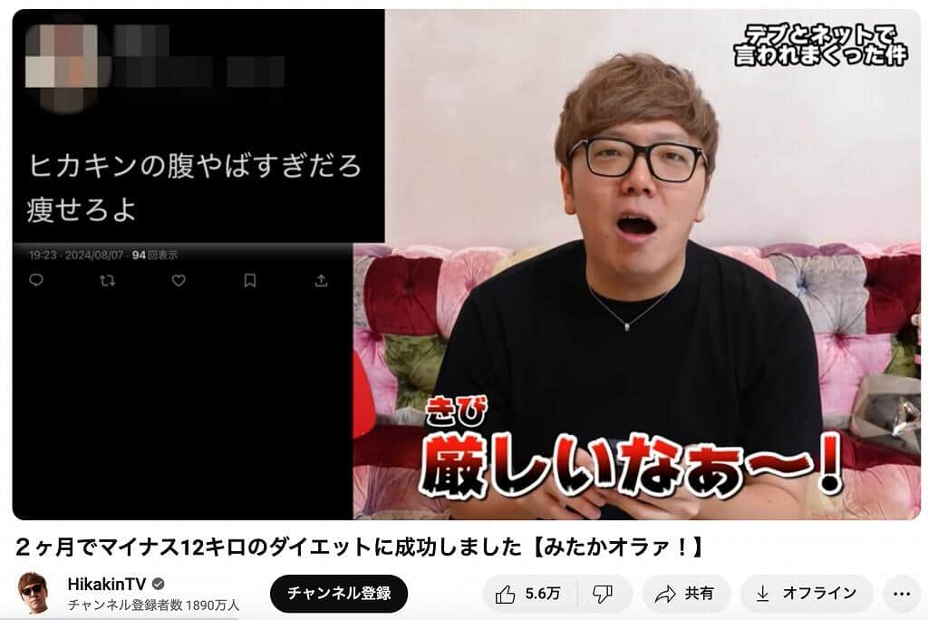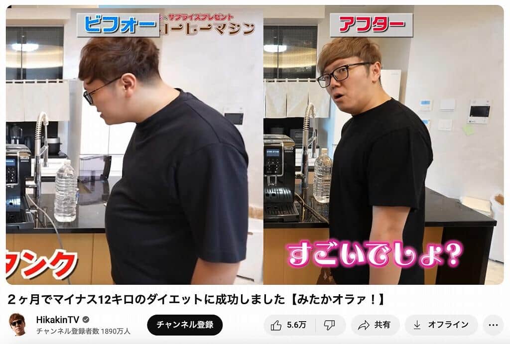 ヒカキン、2か月で12キロ減!秘訣は「焼き鳥ダイエット」 健康診断の数値も格段に改善される