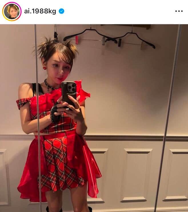 「マジずっとかわいい」加護亜依36歳、モー娘。っぽいチェック柄ミニスカ「この髪型と衣装大好き」