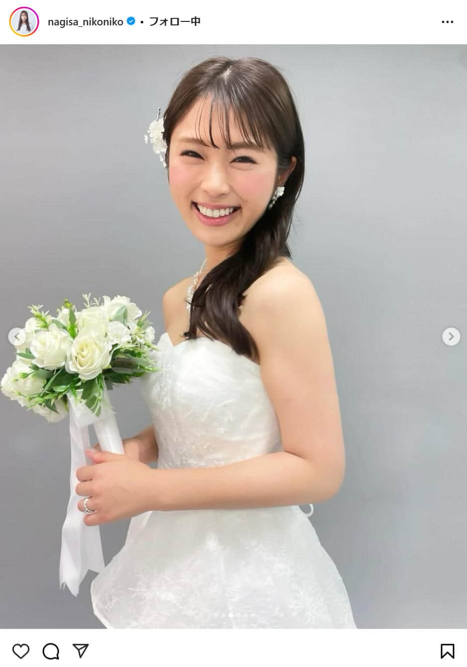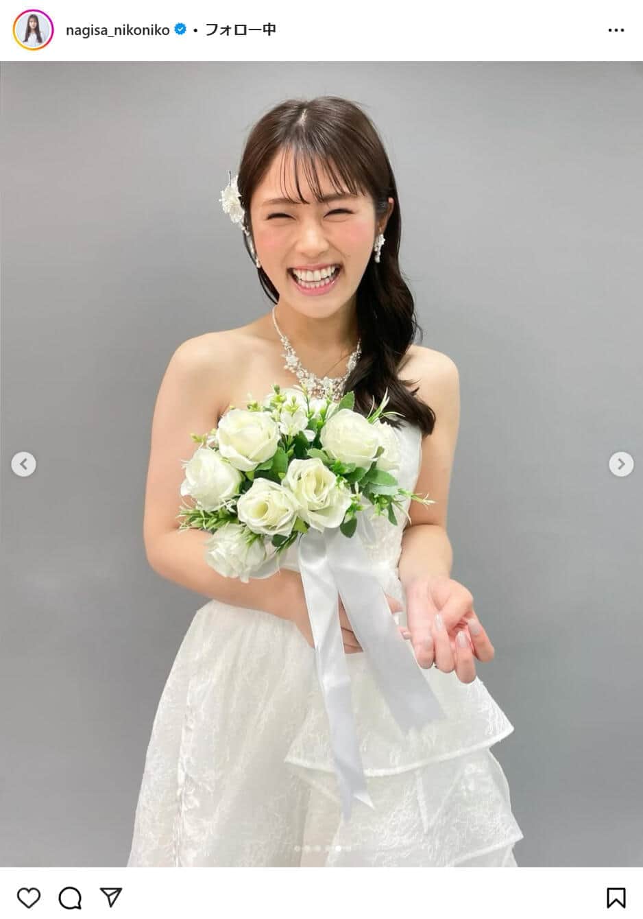 「ほんとのご結婚発表かと...」「嫁にもらいたい」 渋谷凪咲、純白ウエディングドレス姿を披露