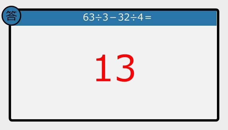 【解けなかったら恥ずかしい?】63÷3-32÷4は?《計算クイズ》