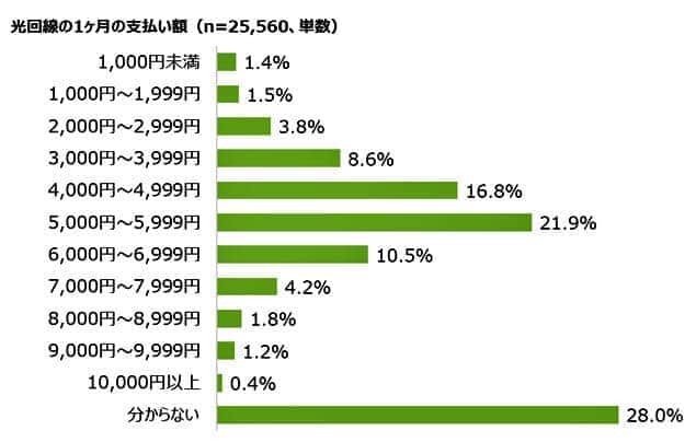 (図表1)現在利用している光回線サービスの1か月の支払い額(MMD研究所の作成)