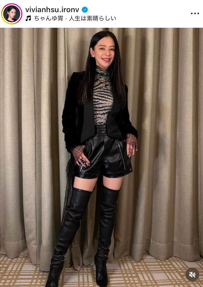 ビビアン・スー49歳、ショーパン×ロングブーツの圧倒的スタイル 「ステキ」「すごい可愛い」大絶賛