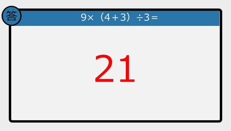 【解けなかったら恥ずかしい?】9×(4+3)÷3は?《計算クイズ》