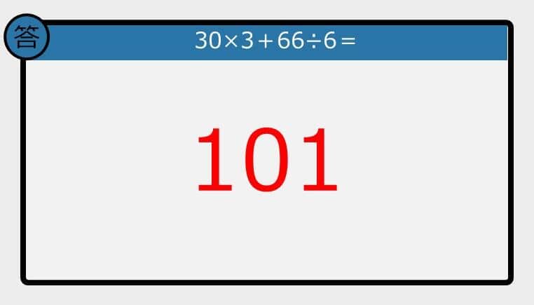 【解けなかったら恥ずかしい?】30×3+66÷6は?《計算クイズ》