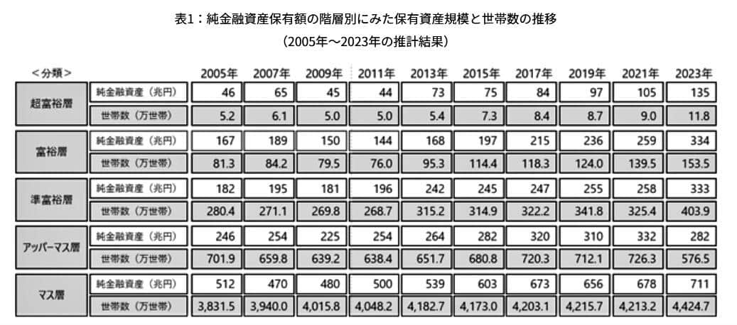 (図表1)純金融資産保有額の階層別分類(野村総合研究所作成)