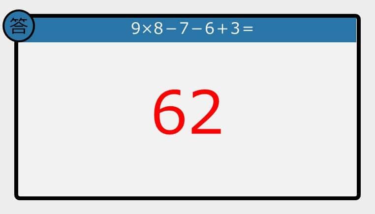 【解けなかったら恥ずかしい?】9×8-7-6+3は?《計算クイズ》