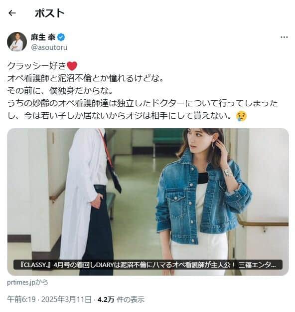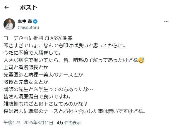 麻生泰氏のX(@asoutoru)より