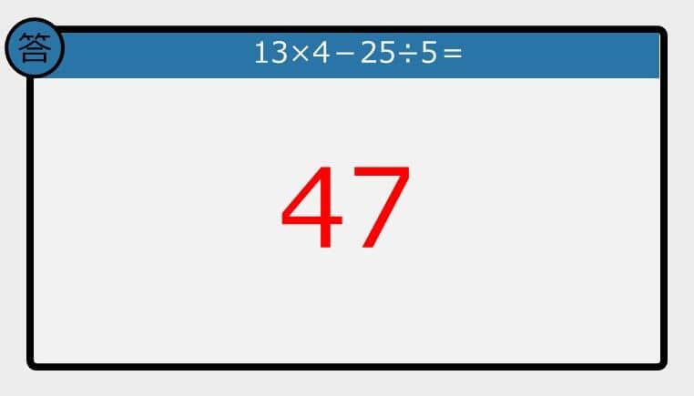 【解けなかったら恥ずかしい?】13×4-25÷5は?《計算クイズ》